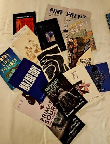 Other sessions I wanted to catch (A Book-branding clinic and Writing the Other) were very poorly scheduled into rooms far too small for the crowds that rushed the rooms. Missed these (while paid sponsors received ballroom-sized live-streamed spaces for sessions of lower attendance.) So I went down to the enormous bookfair, over 800 exhibitors of MFA programs, journals, small presses, various gimmicky courses, and various associations. I walked every enormous row to size up what was there in order to strategize my time here later. But I did meet: